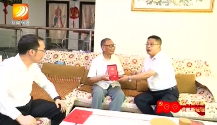 向建平为老党员颁发“光荣在党50...