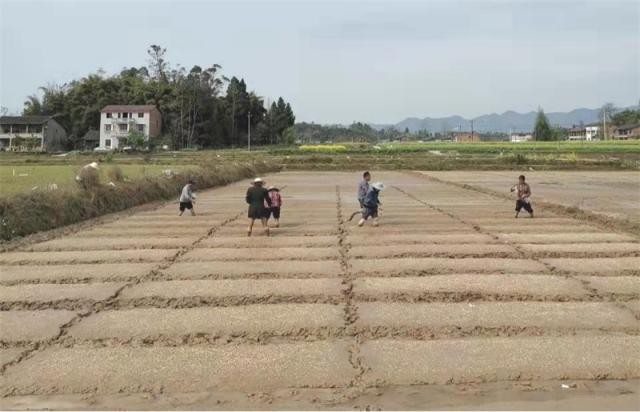 图为:2022年3月18日,达川区万家镇迎风村试验基地水稻试验品种育秧现场