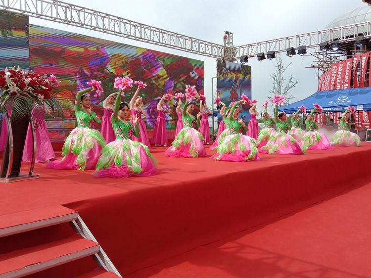 翩翩起舞而优美的大型舞蹈表演中拉开赏花文化节帷幕