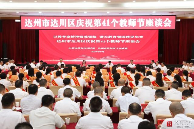 9月9日上午,达川区庆祝第41个教师节座谈会温情启幕,向深耕教育沃土的达川教育人致以诚挚节日问候。此次座谈会紧扣全国教师节“以教育家精神铸魂强师,谱写教育强国建设华章”主题,旨在凝聚教育发展共识,强化教师队伍建设,为“老家达县·宜美达川”建设注入教育动能。
