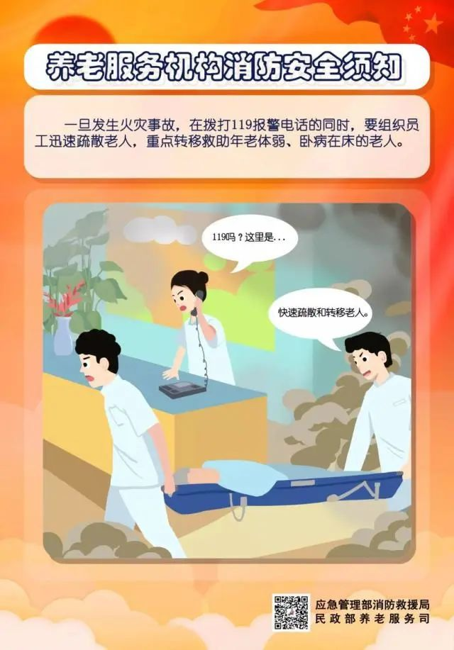 08 养老服务机构一旦发生火灾事故,在拨打119报警电话的同时,要组织员工迅速对老年人进行疏散,重点转移救助年老体弱、卧病在床的老人。