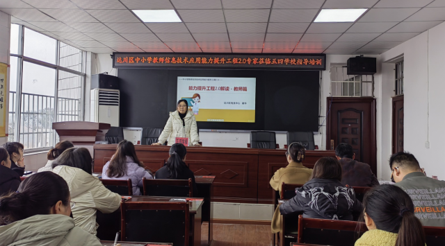 为进一步推动学校教师信息技术应用能力和信息素养的全面提升,促进信息技术与学科教育教学的深度融合,有效提高教育教学质量,3月1日下午,达川区教育装备与信息技术研究中心专家组崔华主任一行莅临我校开展信息技术应用能力提升工程2.0指导培训工作。