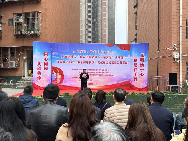 为激发辖区人民群众积极参与创文工作,讴歌三年以来创文工作取得的新成就,进一步提升人民群众对创文工作的获得感、幸福感和满意度。2023年11月20日上午,杨柳街道叶家湾社区开展“创文向人民群众报告”汇报演出。