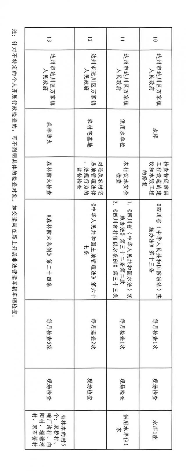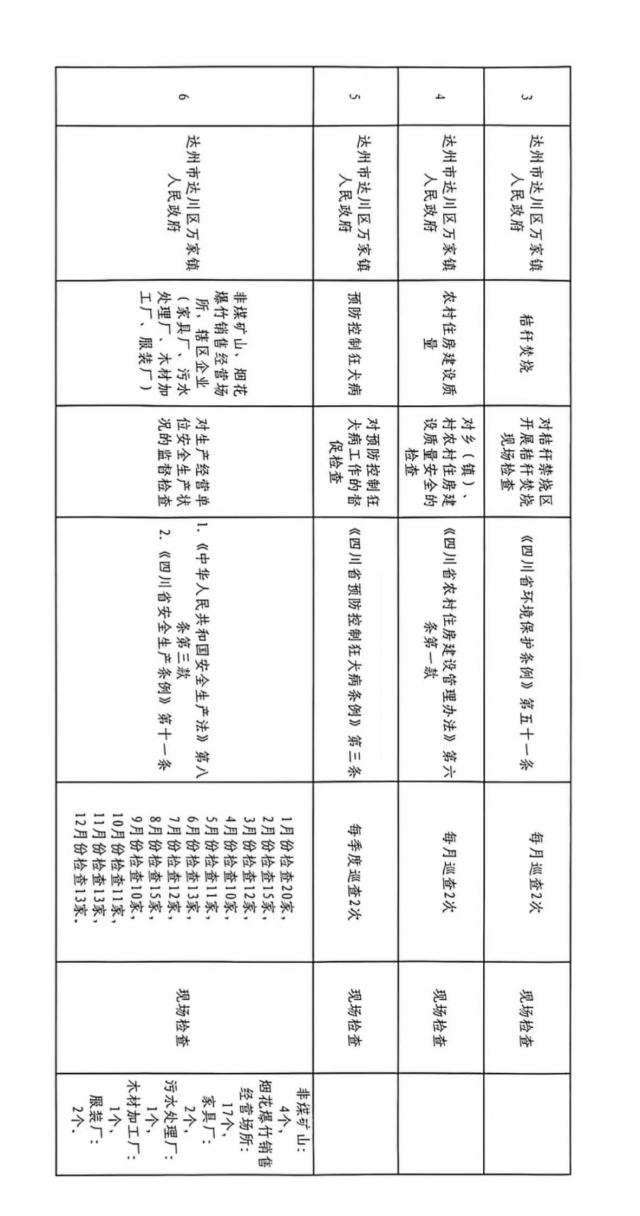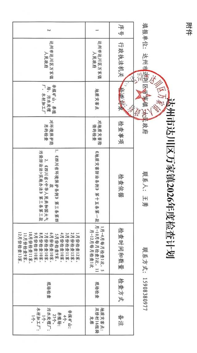 达州市达川区万家镇2026年度检查计划