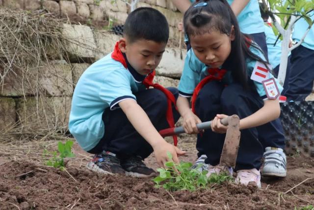 实验小学花溪学校以“爱劳动,爱生活”为主题开展了系列教育活动。主题班课,孩子们发散思维,探讨平时在家、在学校如何积极行动,参与劳动。户外实践,孩子们以农具为学具,以农作物为教材,以大自然为课堂,挖坑、种菜、施肥、浇水……忙得不亦乐乎。技能实践,学生推磨、加水、舀豆、接豆浆、过滤,“磨豆浆”完全不在话下。