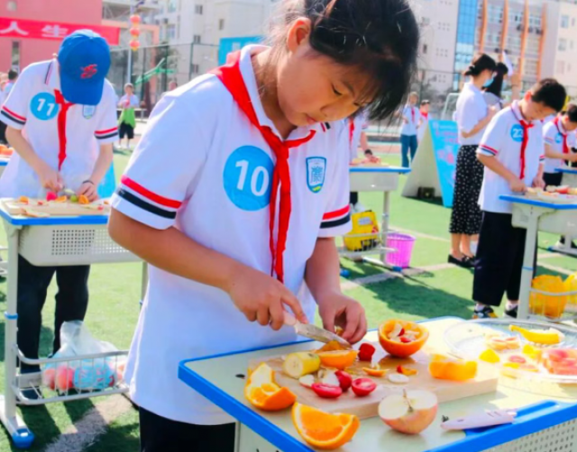 实验小学:以“劳动 ”为抓手,通过“劳动作业单”培养日常习惯,开展叠衣、包饺子等技能大赛锤炼匠心;班级认领校园“责任田”,让学生完整参与“播种——义卖”全流程,培育协作精神;“校园美食节”更成为传承文化与感恩教育的生动课堂。